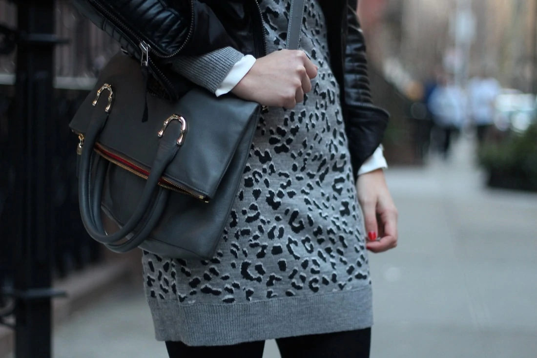 I hope you all enjoyed your weekend! As you may have noticed, this is my first post with my new site (bare with me, still learning it all)! I would love any tips and tricks for using WordPress, as my head is still spinning a bit. Now that 2015 is in full swing, I wanted to share a leopard print dress I scored on sale when the Loft was offering 50% off their entire store. I tend to try to do some shopping after the holidays, but I try and be practical about it and look for items that are on sale and versatile. This past weekend was a mix between warmer weather and rain, so when I did make it outside I kept things casual with a leather jacket, tights and black boots to go along with the leopard print sweater dress.