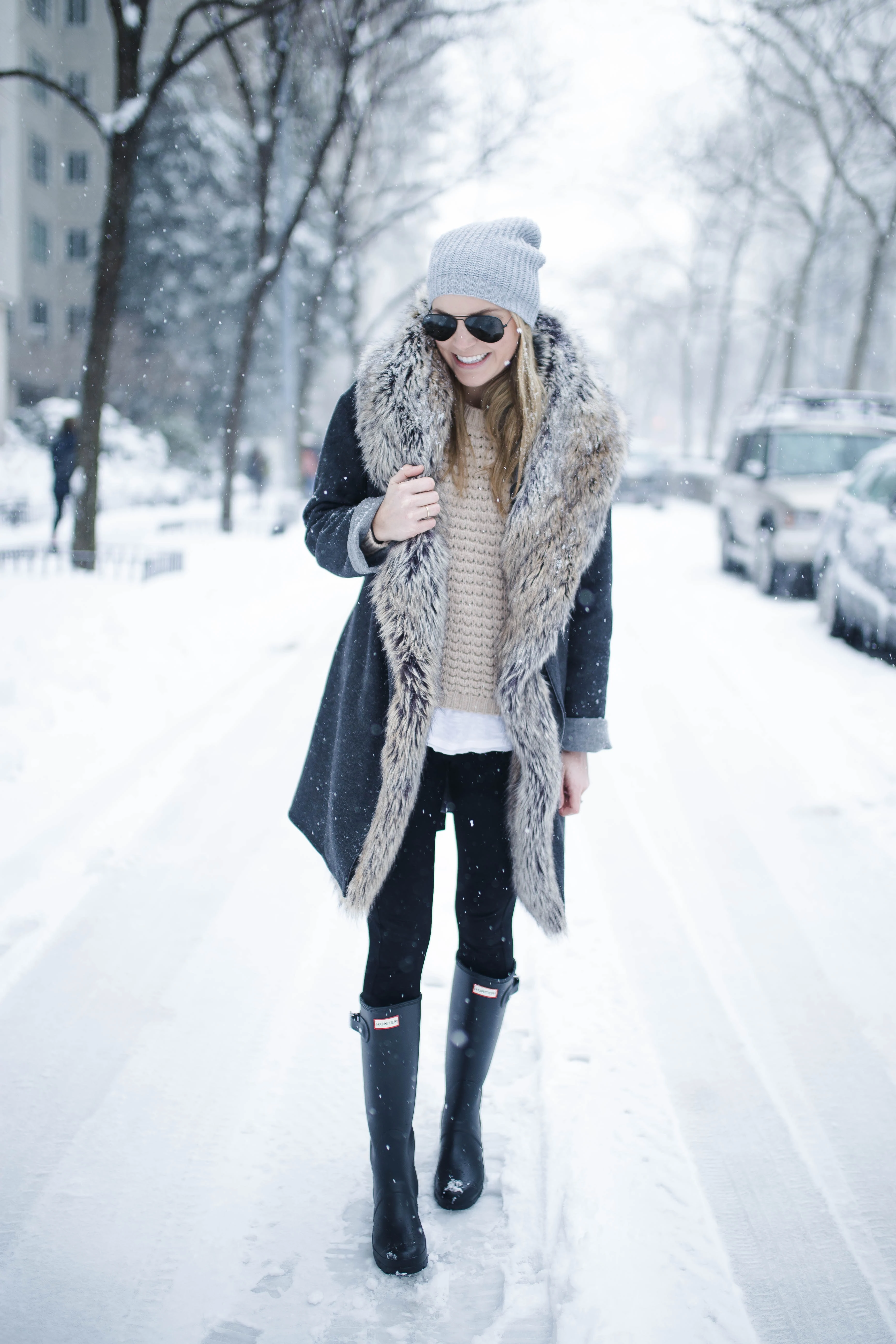 French Connection Cotswolds Oversized Coat (sold out, similar below) // Sweater, old – Barbour (similar) // Tank // Leggings // Hunter Boots c/o // Beanie // Sunglasses