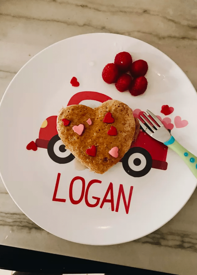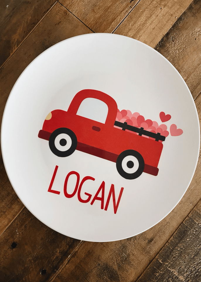 GraceSettings – A more recent Etsy find was this personalized plate I purchased as part of Logan’s Valentines. The stock photo shows the plate with a chevron background, but I reached out to the shop owner who was happy to remove it for my order. The shop carries plates, mugs, bowls, and place mats that are customizable and would be perfect for holidays, birthdays or just because.