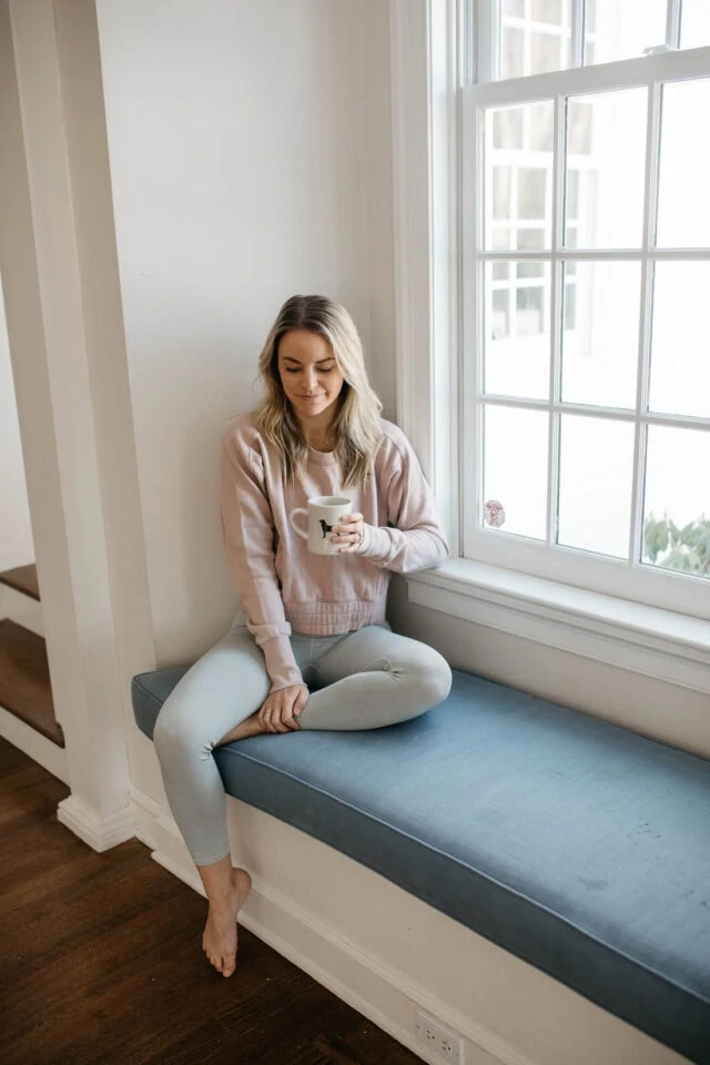 A few mornings a week (I aim for 4), I like to get my workout in before the rest of the house gets up (minus my furry gal-pal, I take her on her am walk first). To make it more likely that it gets done, I try and lay out my workout clothes the night before (Free People Movement has the cutest stuff) so I don’t even have to think about it early in the morning. Then, as much as I crave my cup of coffee, I try and drink a glass of lemon water before and during my virtual barre class. Afterwards, a hot coffee and a few peaceful minutes to myself is my reward before the craziness of the day begins.